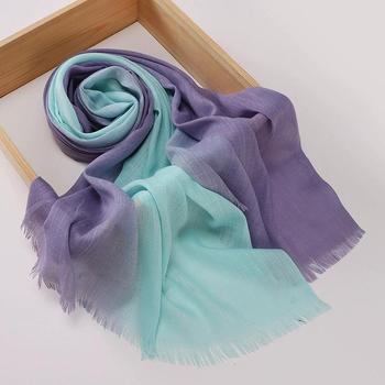 Bufanda larga arrugada de Color degradado de gasa de algodón de Venta caliente, bufanda de moda pintada a mano con diseño para cubrir la cara