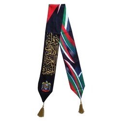 Bufanda DE LOS Emiratos Árabes Unidos con estampado de tela de tejido liso de poliéster personalizada de fábrica Bufanda DE LOS Emiratos Árabes Unidos bordada en 3D de estilo hilado dorado